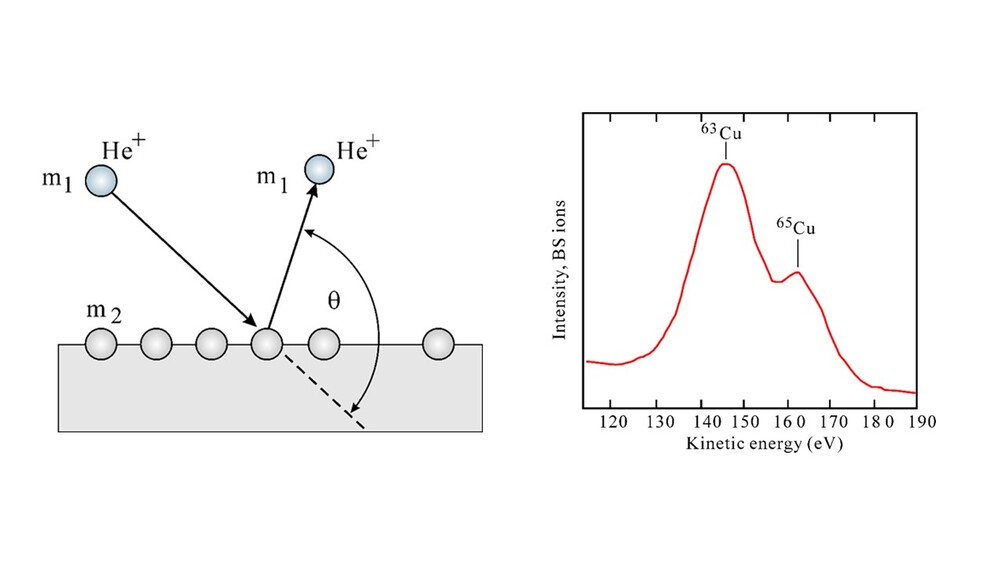 ISS represents the group of analytical techniques whose principle is based on the measurement of kinetic energy and intensity of backscattered primary beam ions from atoms of solid surfaces. The backscattered ions of the ion beam probe exchange energy and momenta with surface atoms, and thus, they carry information on the masses of surface atoms.