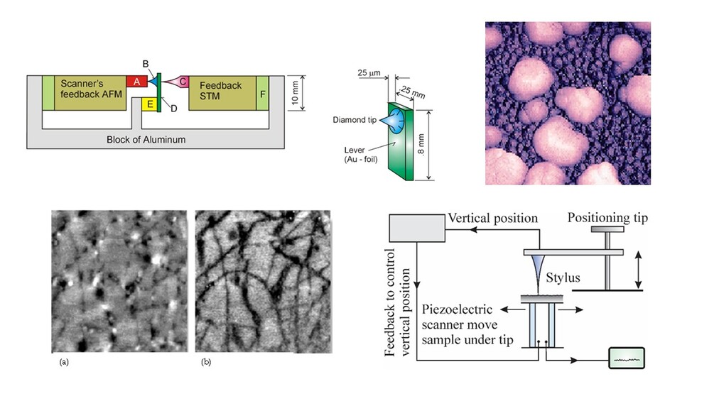 Since the invention of scanning tunneling microscopy (STM) several new exciting surface analyses based on scanning probe techniques have been developed. The most notable is the atomic force microscopy (AFM) where the force between a stylus sharp tip and sample is used similarly as the tunneling current in STM. The spatial resolution of AFM is almost in the range of that of STM. More importantly, stylus tips and samples are not required to be electrically conductive.